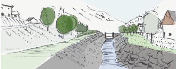 Des terrasses (ou banquettes) de 15 mètres de large avec une pente transversale de 2% seront positionnées sur la rive gauche du torrent, à deux mètres au-dessus du fond du lit. Le but ? Constituer une zone potentielle d’expansion des laves torrentielles de forte ampleur et, ainsi réduire le risque de débordement en rive droite où il y a les villages. Sur cette rive, des berges de protection (3,50 mètres de hauteur) permettront de contenir des laves exceptionnelles.