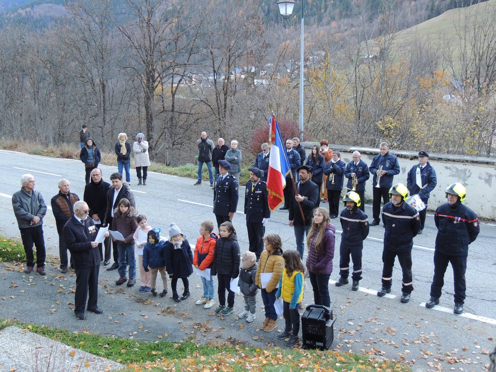 Après avoir souhaité la bienvenue à l’assistance, le Maire de Saint-Colomban-des-Villards a lu le message de Catherine Vautrin, Ministre des Armées et des Anciens combattants, et d’Alice Rufo, Ministre déléguée auprès de la Ministre des Armées et des Anciens combattants : (…) « Le 11-Novembre, la France écoute battre son cœur. Elle se recueille devant les noms de ceux qui ont donné leur vie pour que nous vivions libres. Elle se rassemble pour commémorer la victoire et célébrer la paix.