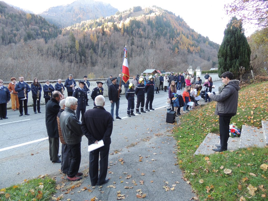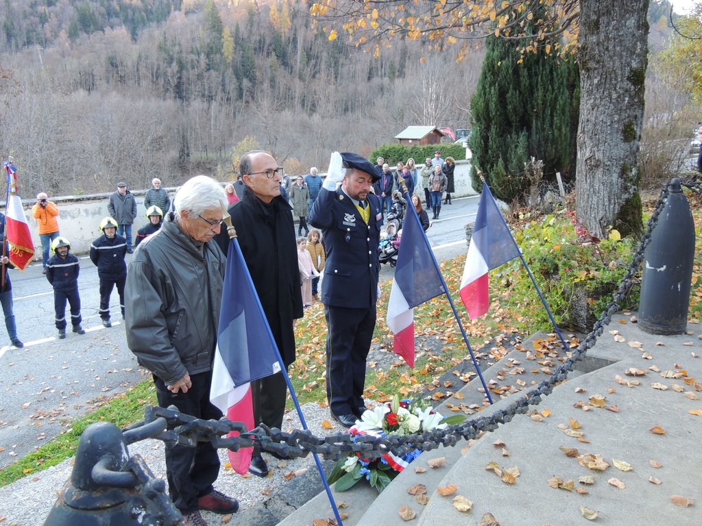 Devant le monument aux Morts de la Commune (voir photo), environ une cinquantaine de personnes étaient présentes avec le Maire, Pierre-Yves Bonnivard, et une délégation d’anciens combattants et victimes de guerre de la vallée des Villards, conduite par leur président, Patrick Louadoudi.