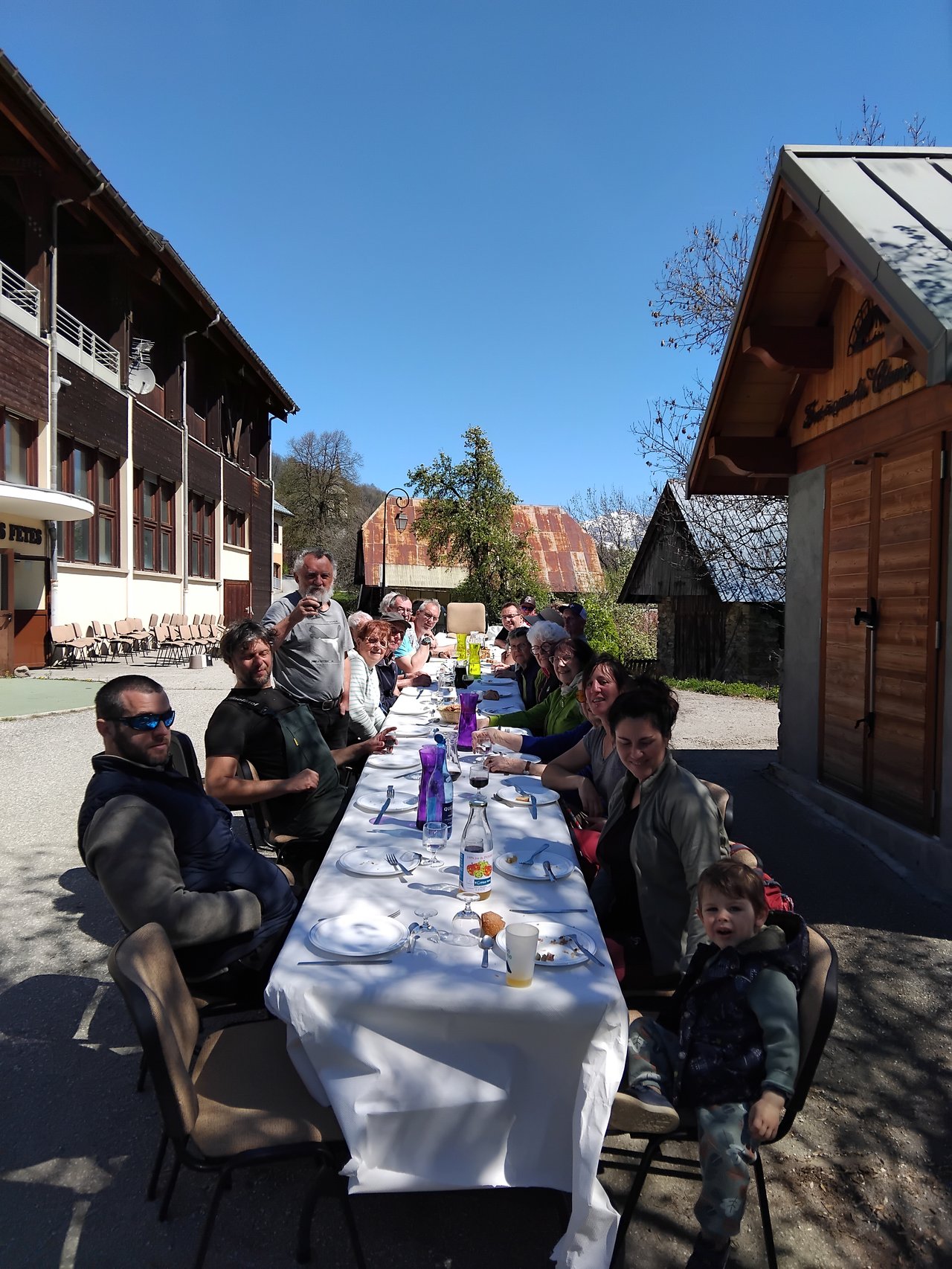 Après une belle matinée ensoleillée de travail, un repas a été partagé devant la salle des fêtes dans la bonne humeur